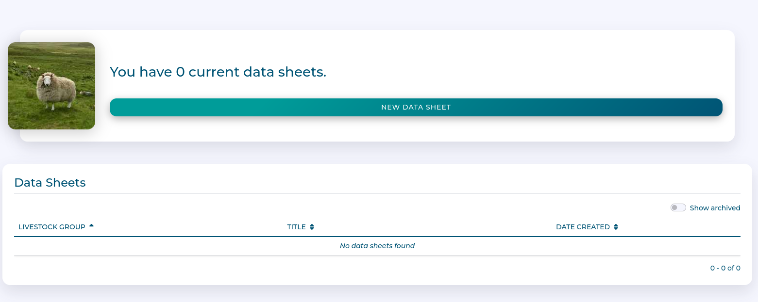 Data sheets are found in the Navigation menu under 'My Farm'.