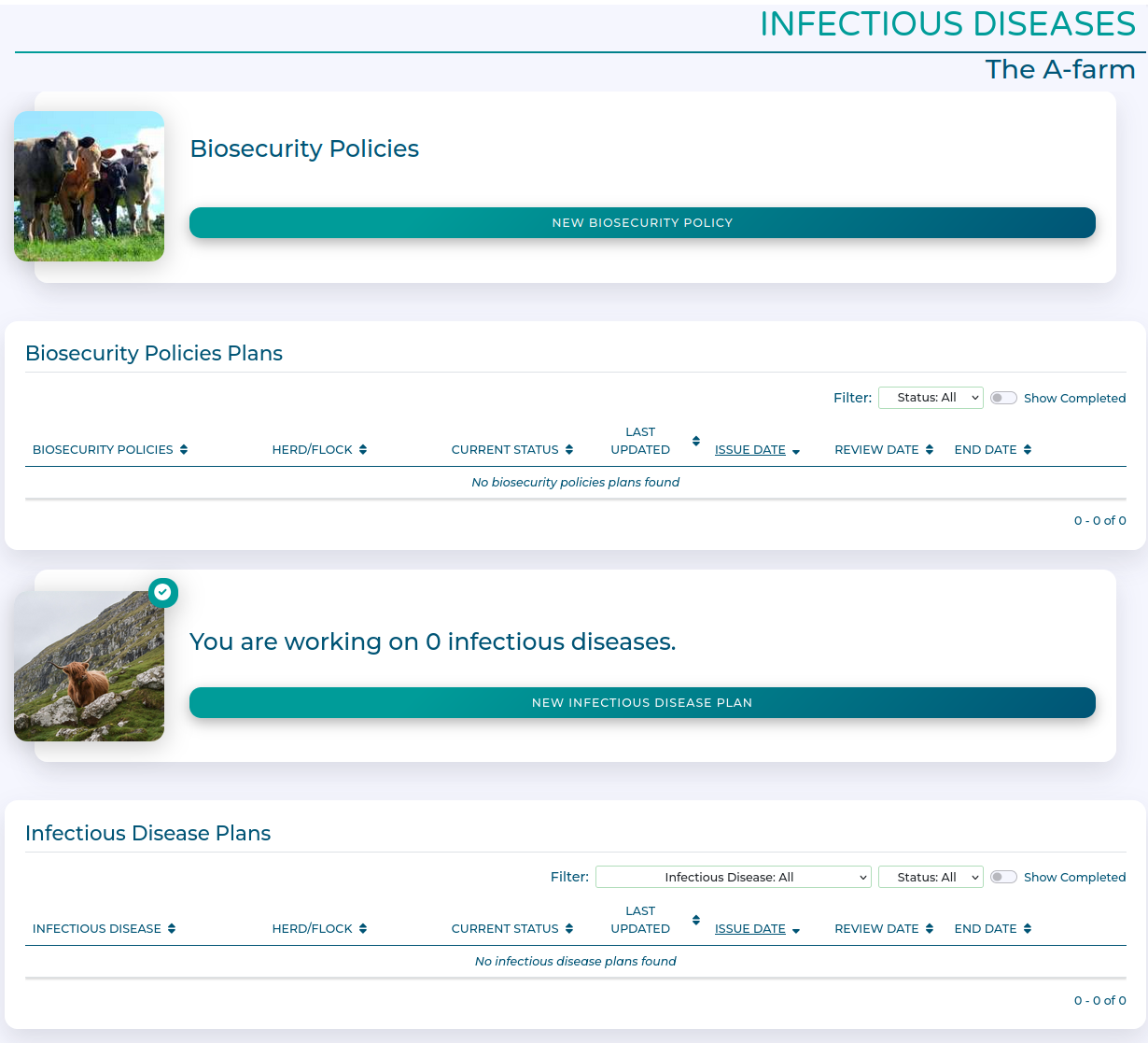 The Infectious Diseases module lets you set Targets and Actions for managing specific infectious diseases within your livestock.