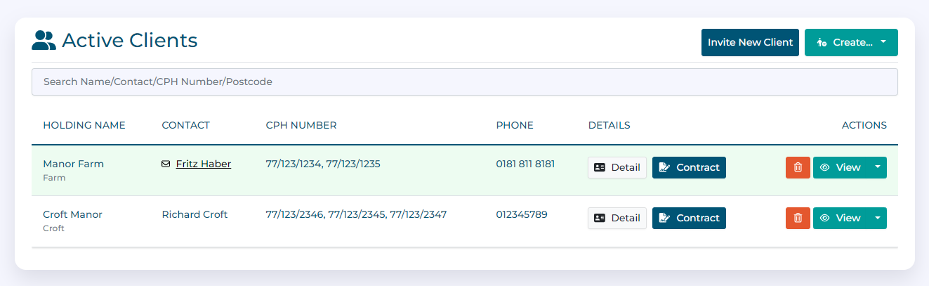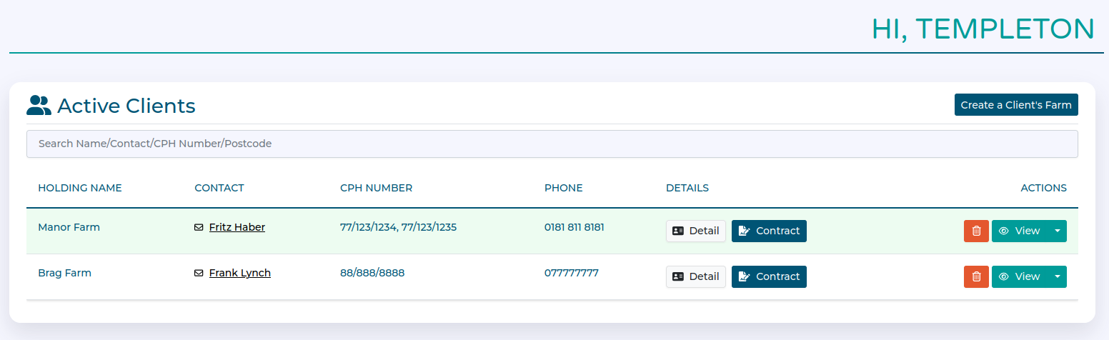Clicking the view button for a client makes that client the selected client and navigates you to their Farm overview.