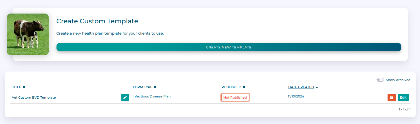 Templates aren't available to clients to use until they are published. You can toggle the status by clicking on the Not Published or Published button respectively.